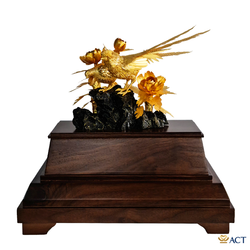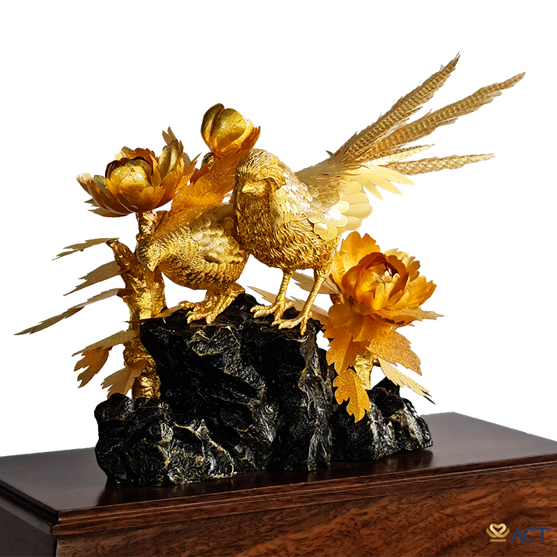 Quà tặng Chim Uyên Ương dát vàng 24k ACT GOLD, kích thước đế: 29x17x36,5 cm, ACT-BT-0065