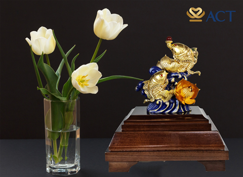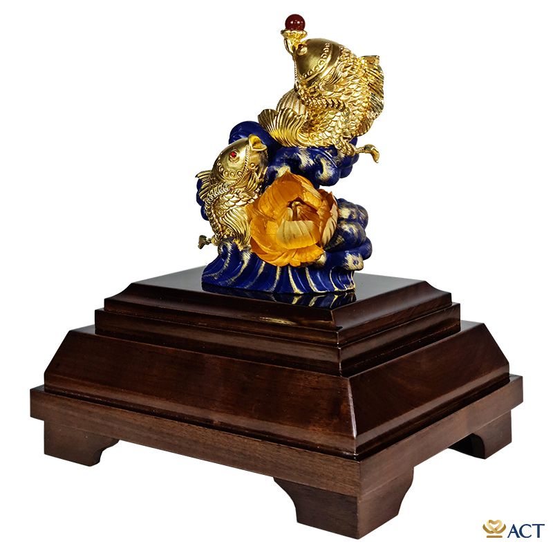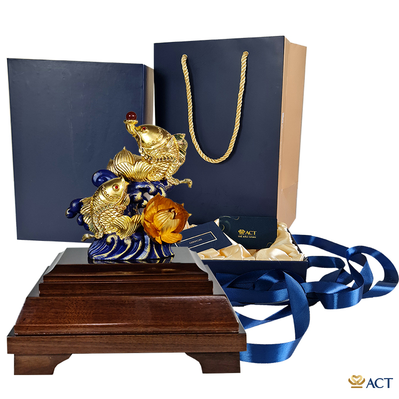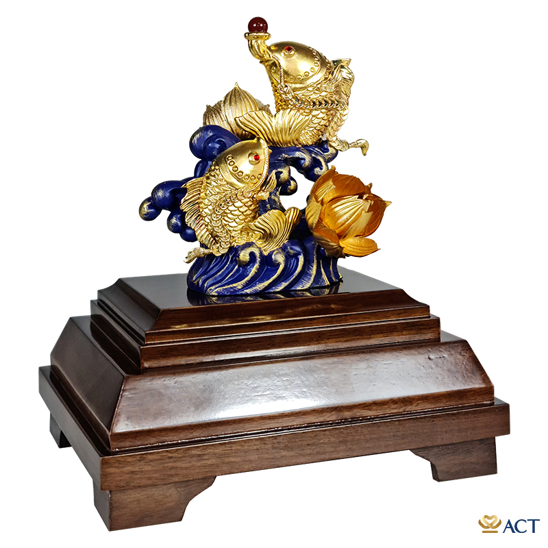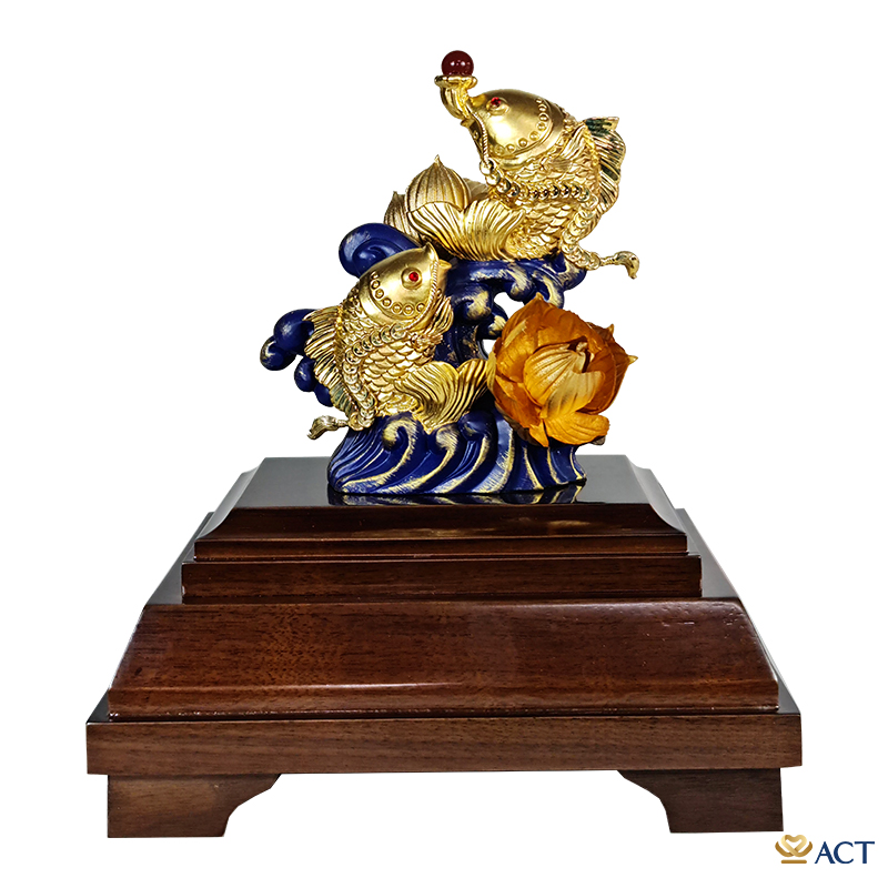 Quà tặng Cá Chép Hoa Sen dát vàng 24k ACT GOLD, kích thước đế: 19,5×15,5×29,5 cm, ACT-BT-0137